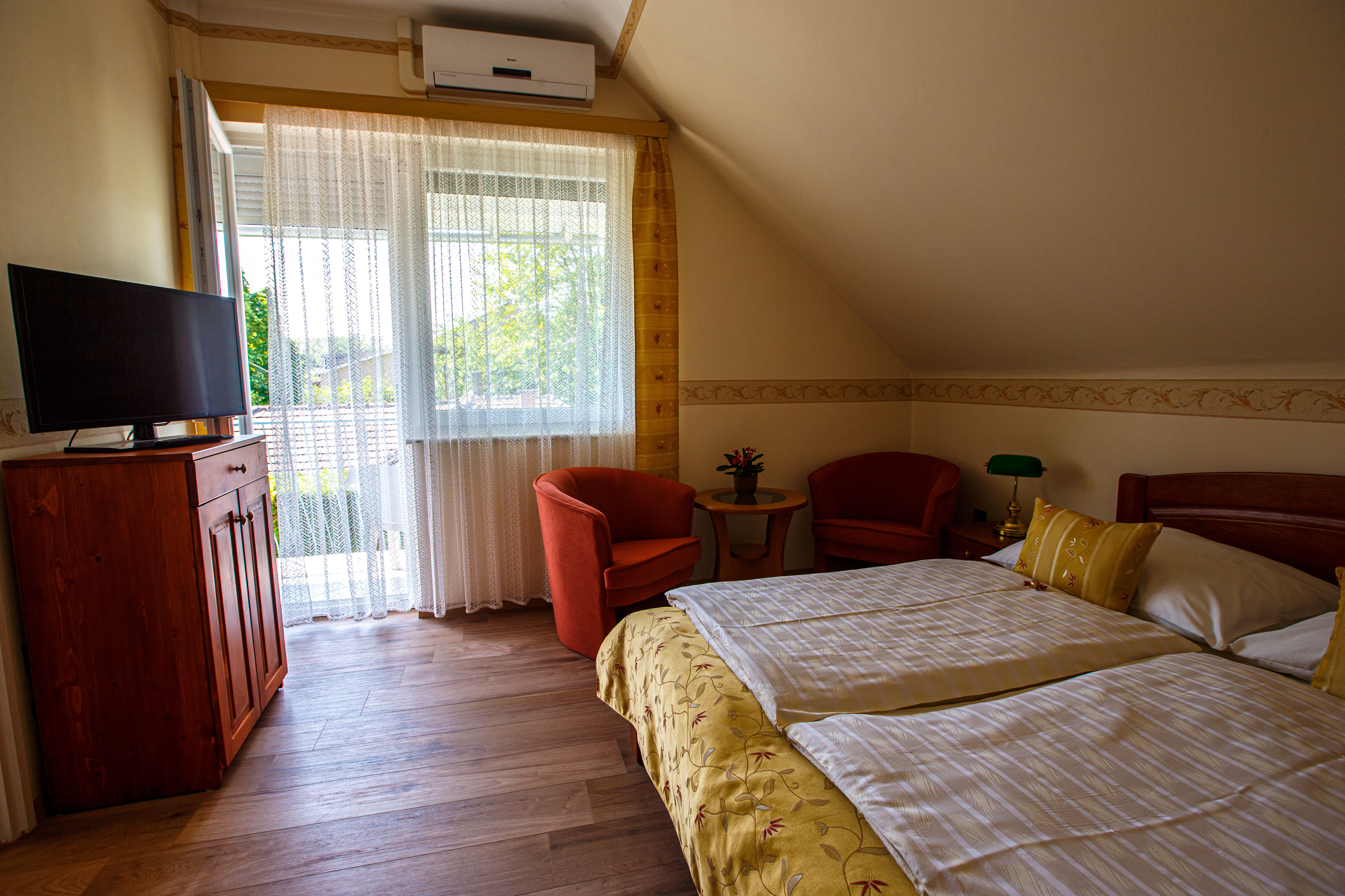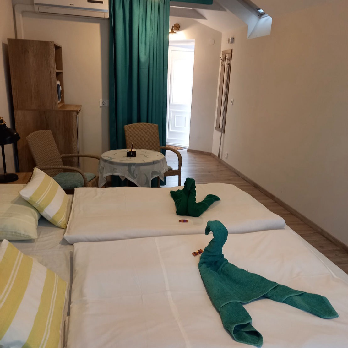 - A szálláshelyen található legnagyobb apartman, 2 személy részére - Nappali, hálószoba, terasz - Saját konyhával, előtérrel és 2db fürdőszobával rendelkezik - Klímával, televízióval és Wifivel felszerelve